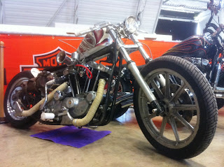 Michel built this ironhead sporty, beside his other chop and his Buell. He is a walking encyclopedia about choppers and all the stuff beside it. Love talking and drinking with the man, his most used word (in English) is "Vintage", with a fat French accent! The man is living, breathing and eating choppers. Choppers for life!